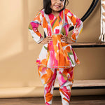 Girls Frock Style Cotton Fabric Orange Color Kurti With Dhoti