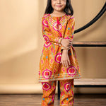 Girls Straight Style Cotton Fabric Multi Color Kurti With Palazzo