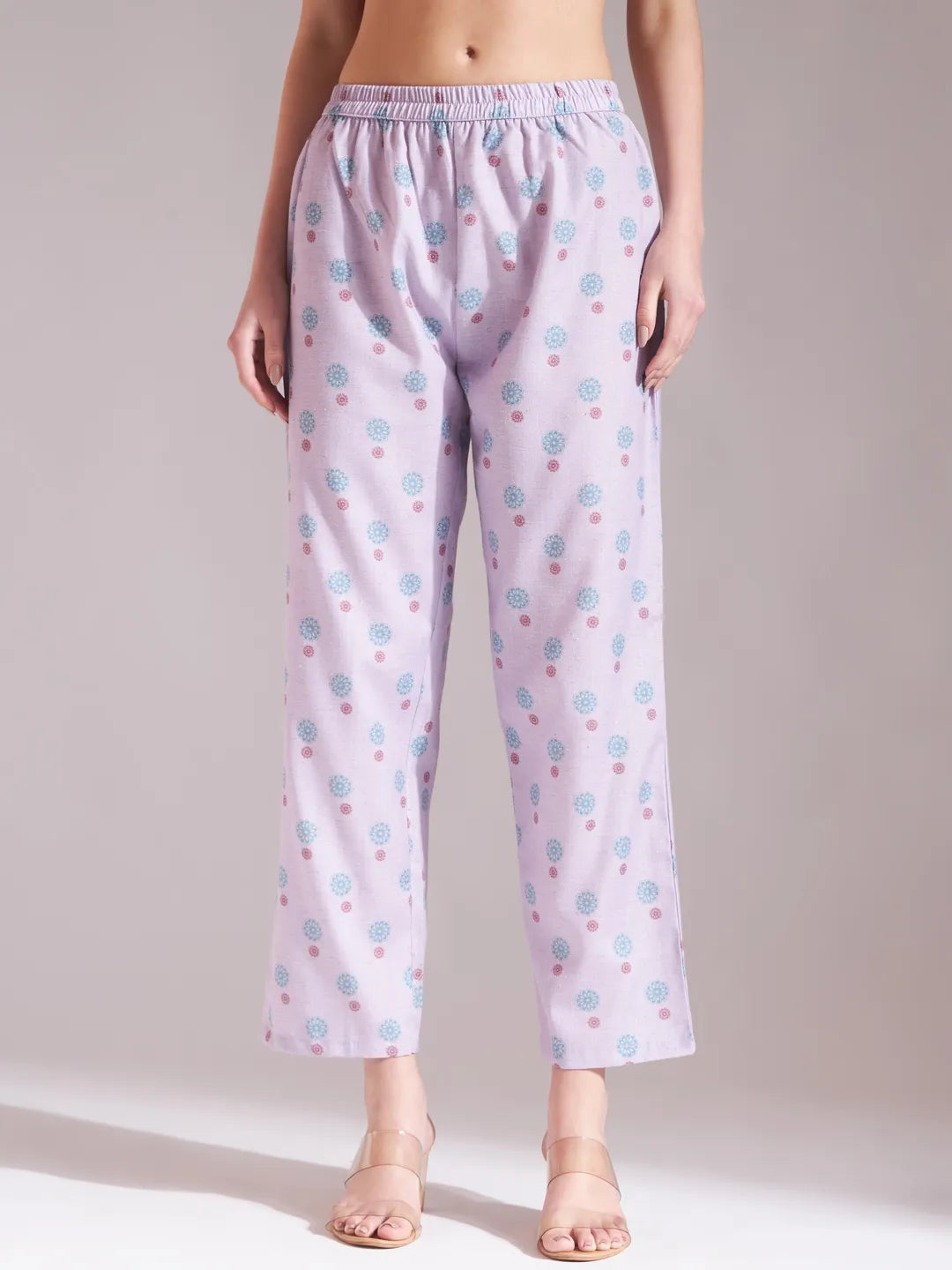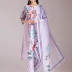 Lavender Floral A-line kurta Trouser Dupatta Set,