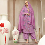 Lavender Mul Chanderi Silk Embroidery A-Line Kurta Palazzo Dupatta Set