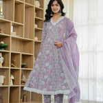 Lavender Pure Cotton Anarkali Kurta Dupatta Set With Lacework