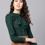 Layered Front Bottle Green Shirt with a Mandarin, in Summer Cool Fabric, Unlined, Full Sleeves, Regular Length, Slim Fit, Button closure at front and Curved hemline