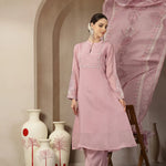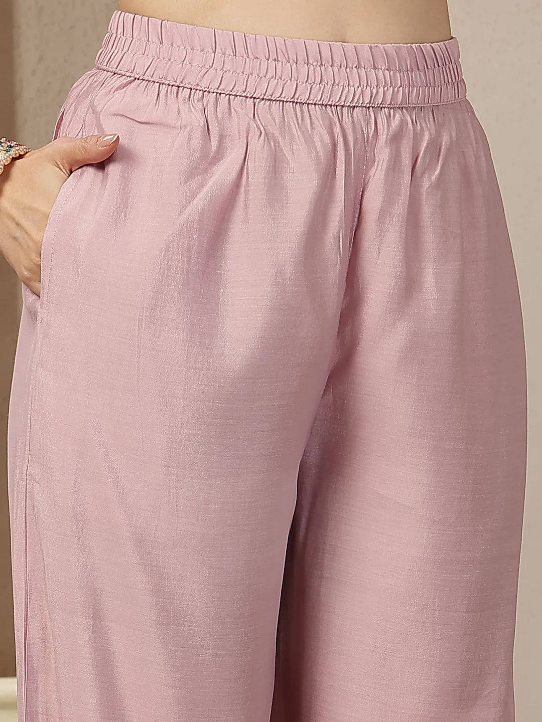 Light Pink Mul Chanderi Silk Embroidery A-Line Kurta Trouser Dupatta Set
