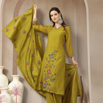 Lime Green Mul Chanderi Embroidery A-Line Kurta Trouser Dupatta Set