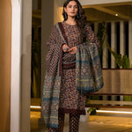Maroon Floral Print Piping On Yoke Pakistani Style Kurta With Trousers And Dupatta Set