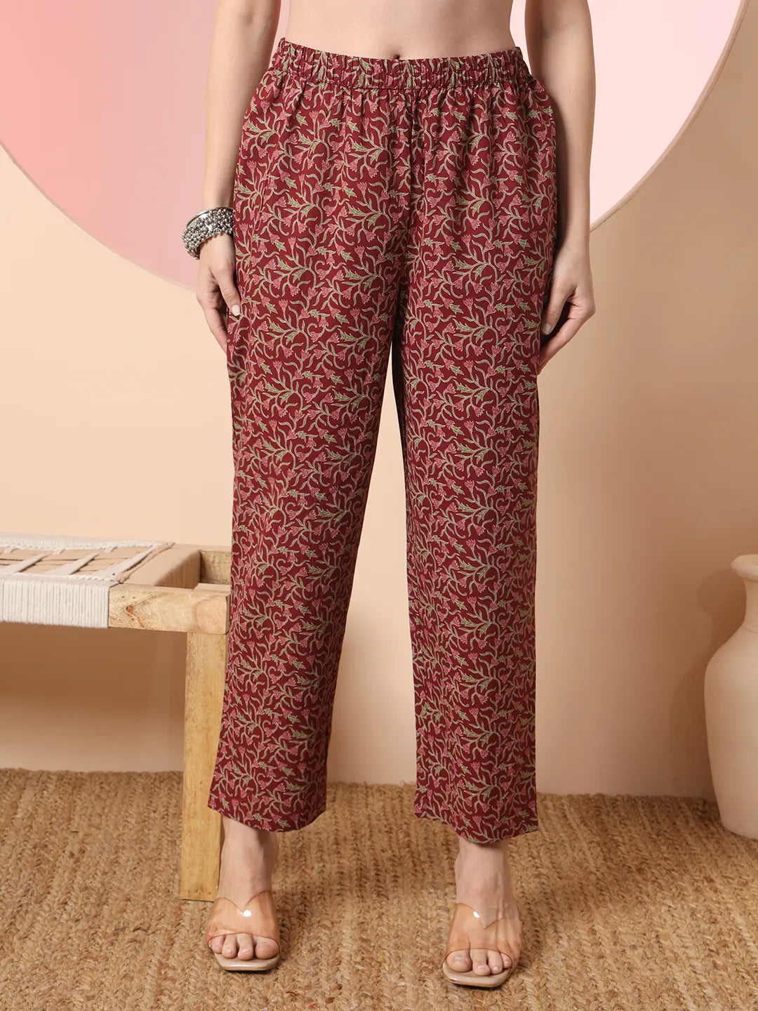 Maroon, pink, gold printed Kurta with Trousers with Dupatta