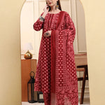 Maroon Pure Cotton Floral Sequins Work A-Line Kurta Trouser Dupatta Set
