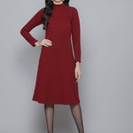 Maroon Rib Turtle Neck Raglan Sleeve Midi Dress, in Rib fabric, Unlined, Midi Length, A Line, Button Closure, Flared Hemline and features Raw Edge Detail On Raglan Front and Back