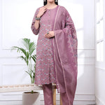 Mauve Ethnic Motifs A-line kurta Trouser Dupatta Set