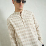 Men Beige & Brown Stripes Relax Fit Kurta Shirt