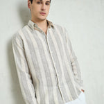 Men Beige & Grey Cotton Stripes Relax Fit Shirt