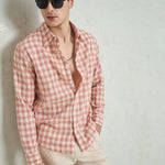 Men Beige & Pink Cotton Check Relax Fit Shirt