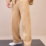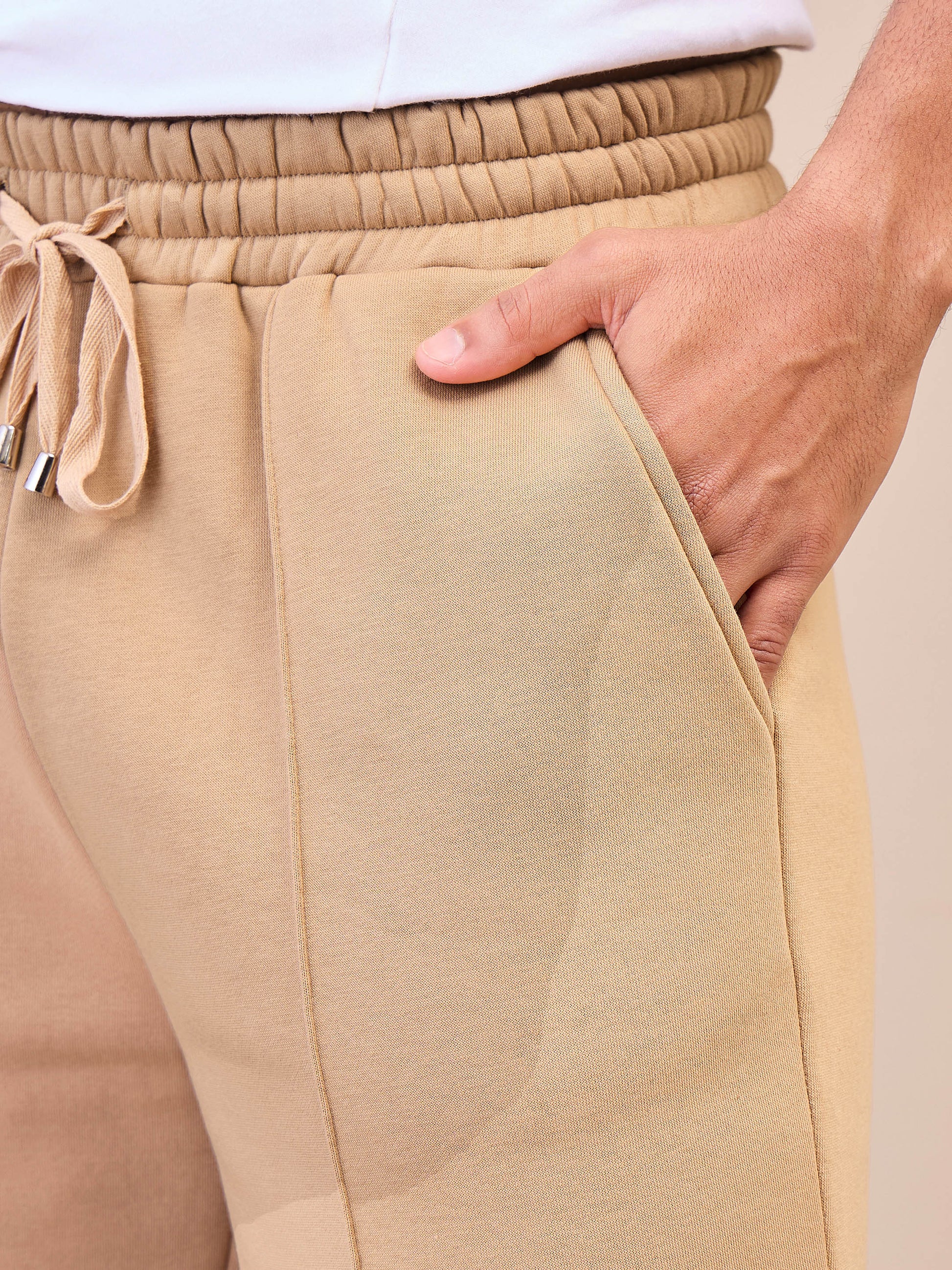 Beige Pintuck Oversize Sweatpants, in Fleece fabric, Unlined, Regular length, Oversize Fit, Drawstring, Straight Hemline and features Pintuck Detail At Front
