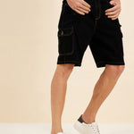 Men Black Denim Box Pocket Shorts