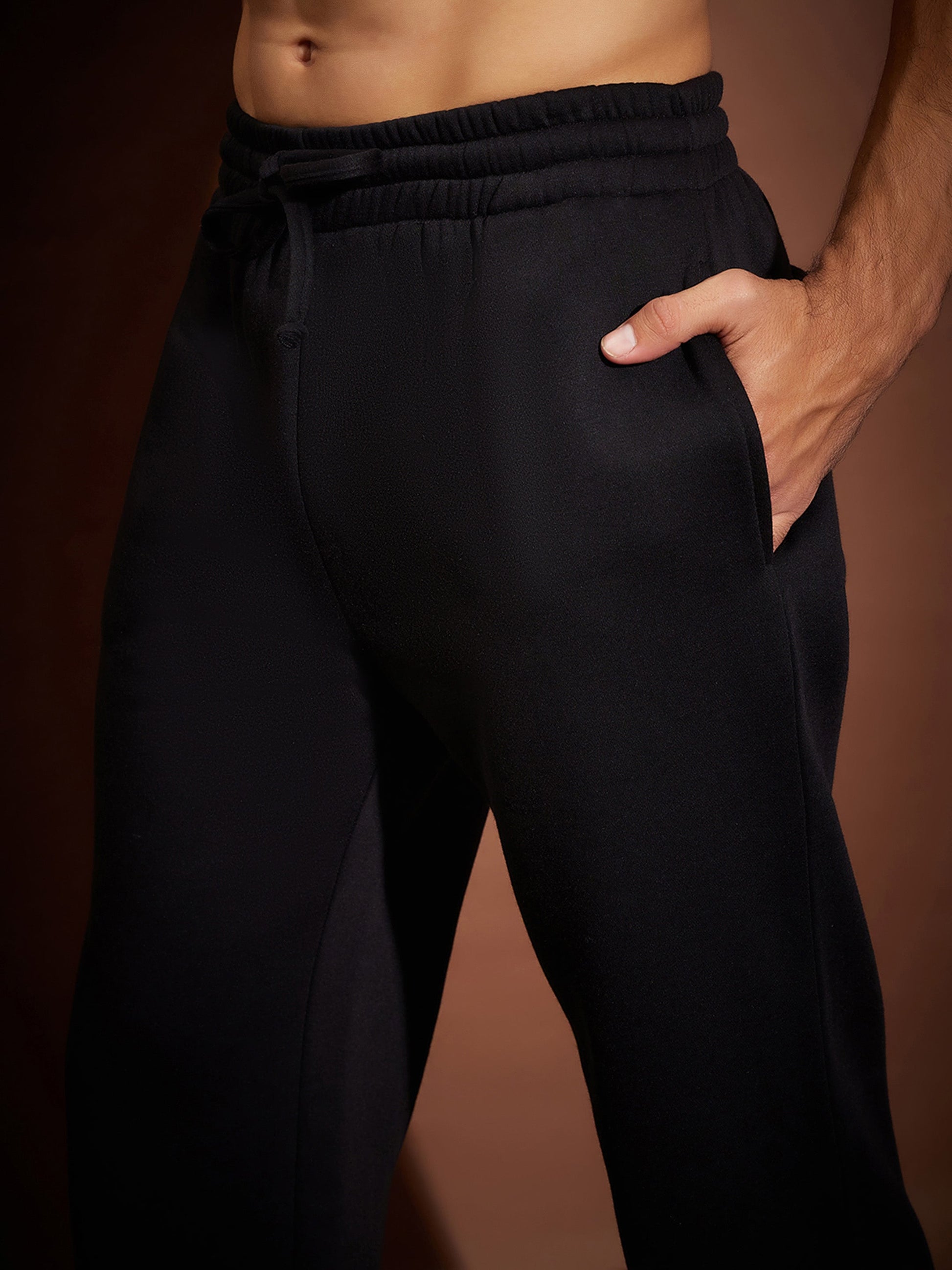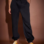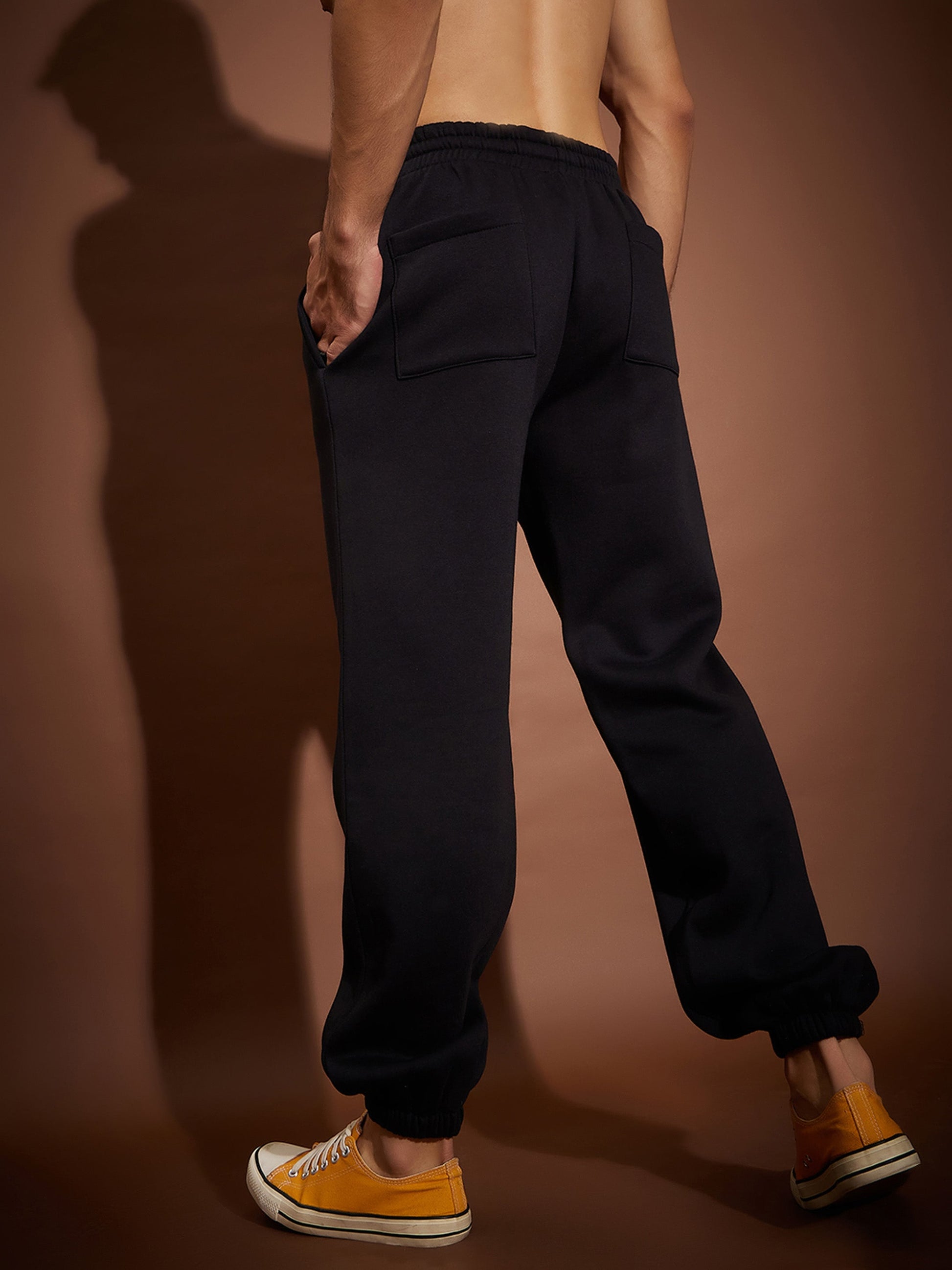 Black Oversize Joggers, in Fleece fabric, Unlined, Regular length, Oversize Fit, Slip -On, Straight Hemline and features Drawstring At Waistband