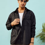 Black Twill Utility Pocket Oversize Shirt, in Twill fabric, Unlined, Regular length, Oversize Fit, Button Closure, Straight Hemline and features Flap Pockets At Front