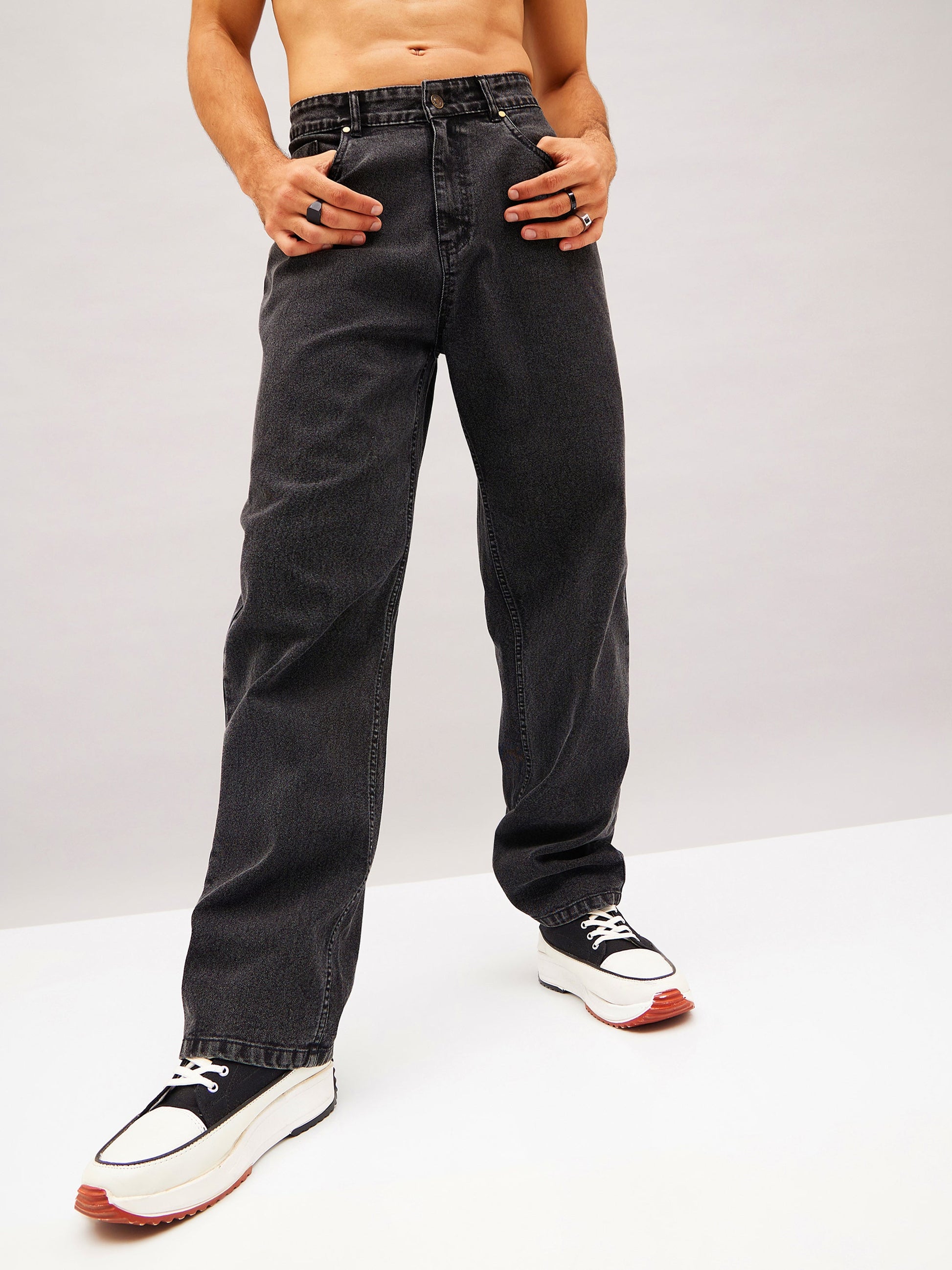 Black Washed Basic Relax Fit Jeans, in Denim fabric, Unlined, Ankle Length, Relax Fit, Button Closure, Straight Hemline and features