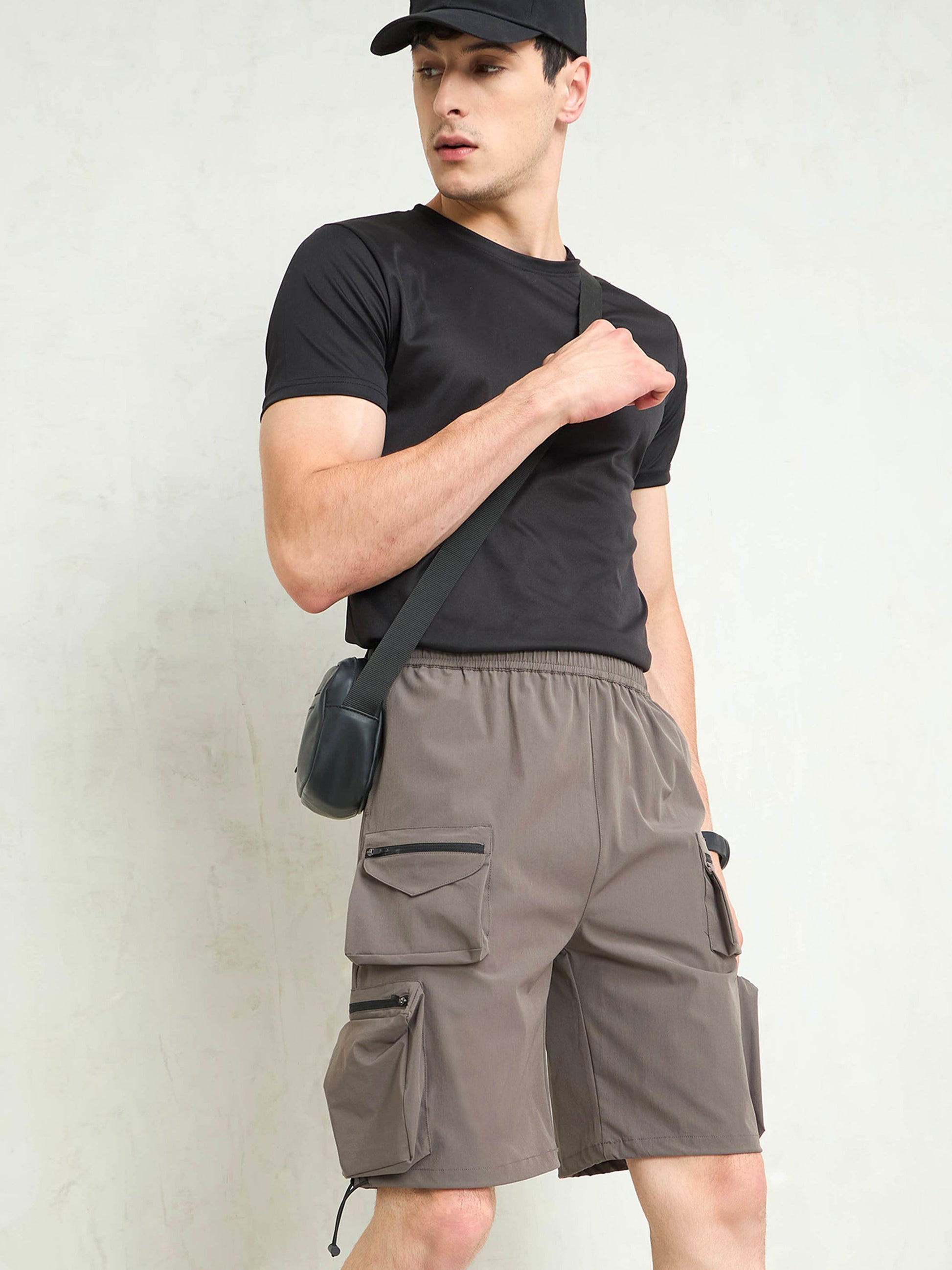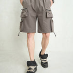 Men Dark Grey Utility Pocket Parachute Shorts
