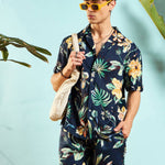 Men Navy Blue Tropical Shirt With Shorts