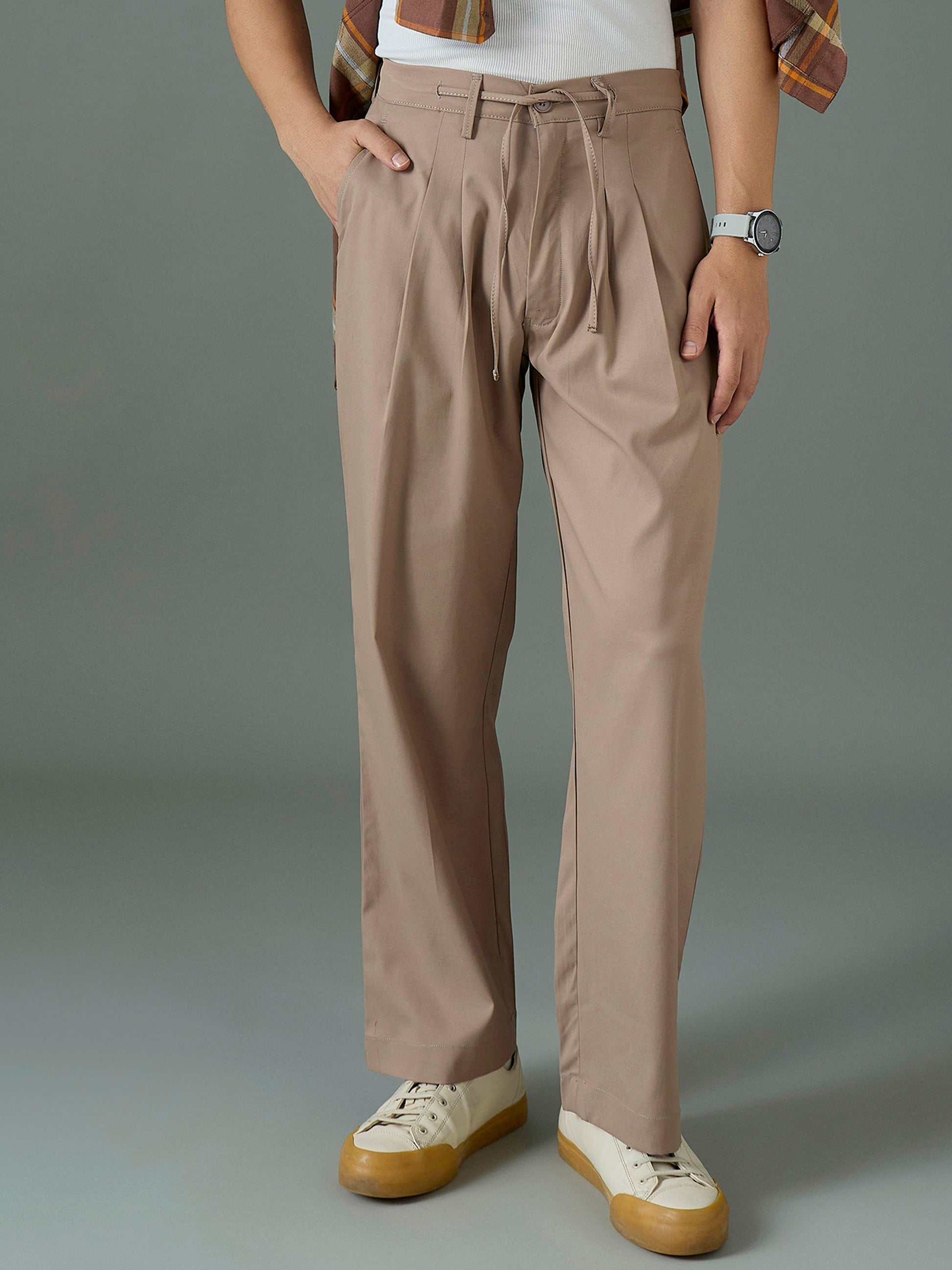 Men Taupe Front Dori Relax Fit Korean Trouser