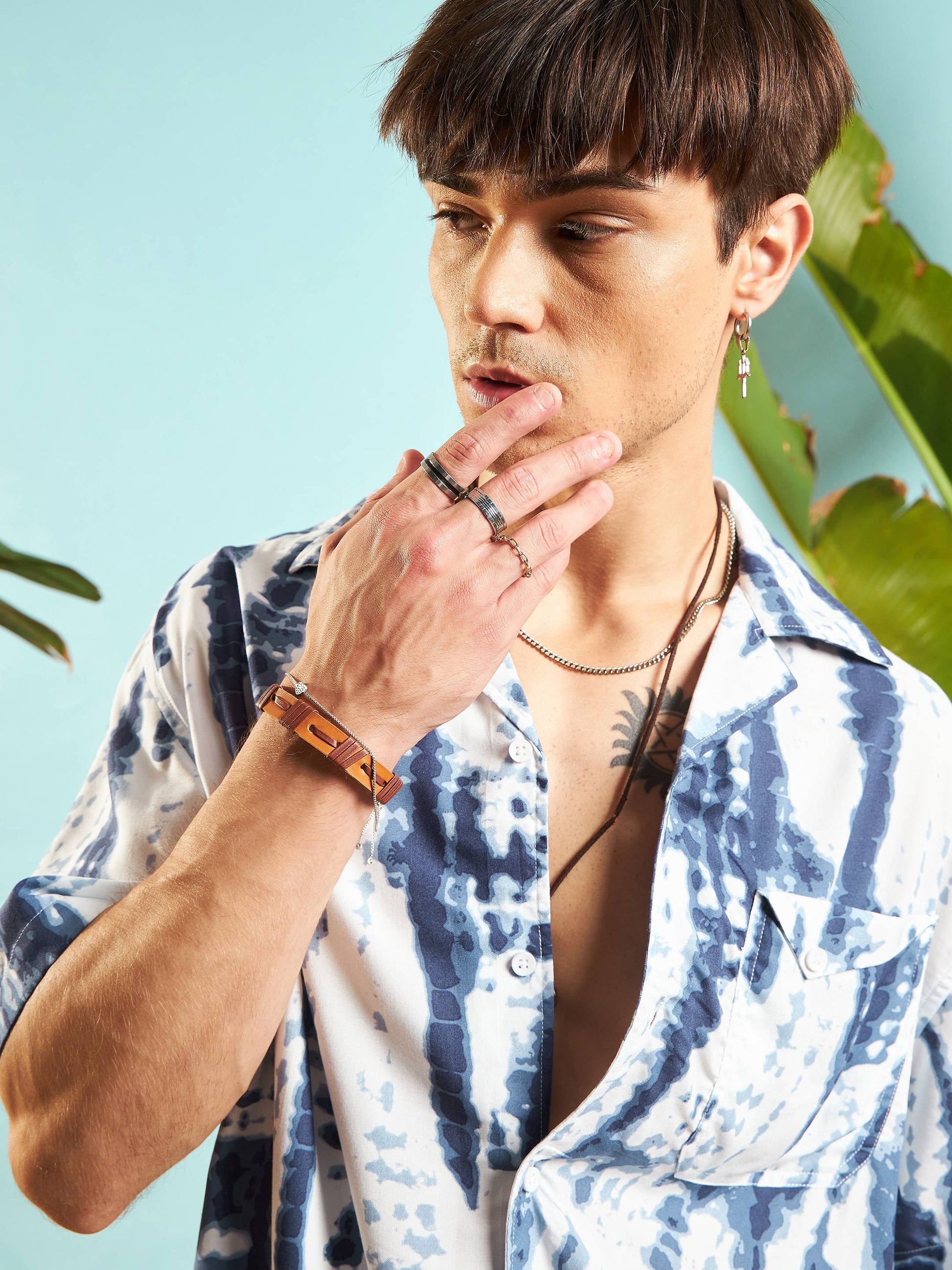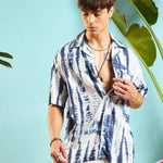 White & Blue Tie Dye Relax Fit Shirt, in Rayon fabric, NA, Regular Length, Relax Fit, Button Closure, Straight Hemline and features Pocket At Chest