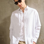 Men White & Grey Stripes Overlap Sleeve Relax Fit Shirt