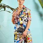 Men White Multi Colour Abstract Shirt With Shorts