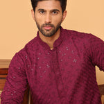 Embroidered Chikankari And Sequence Kurta With Pyjama For Men