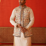 Embroidered Waistcoat & Solid Kurta Pyjama For Men