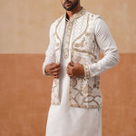 Embroidered Waistcoat And Kurta Pyjama For Men