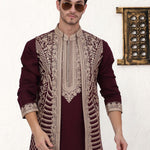 Men'S Embroidered Waistcoat And Kurta Pyjama.