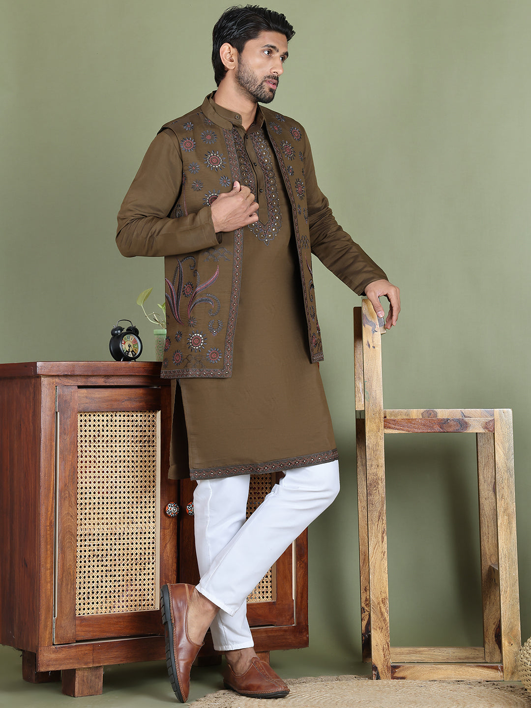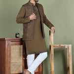Embroidered Waistcoat & Solid Kurta Pyjama For Men