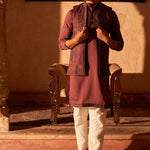 Embroidered Waistcoat & Solid Kurta Pyjama For Men