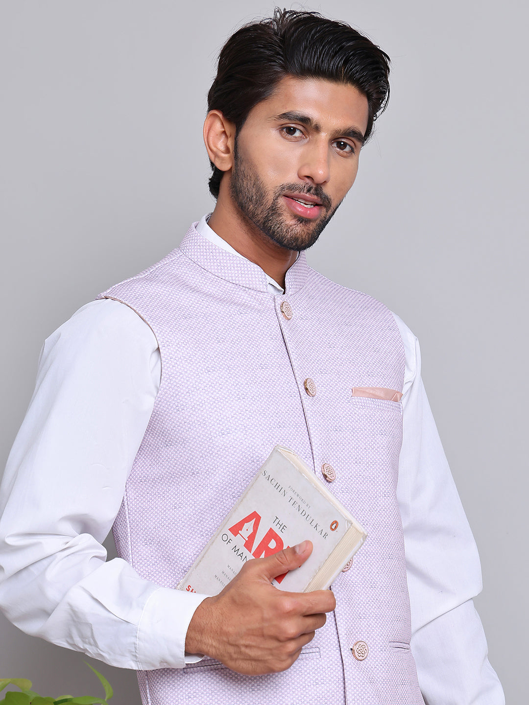 Woven Design Nehru Jacket For Men