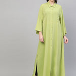 Mint Green Button Placket Longline Shrug, in Crinkle Crepe fabric, Unlined, Full Length, Comfort Fit, Button Closure, Flared Hemline and features Loose Fit Long Shrug