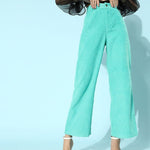 Mint Green Corduroy Straight Pants, in Corduroy fabric, Unlined, Full Length, Straight Fit, Button Closure, Straight Hemline and features 2 Patch Pockets At back