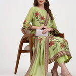 Mul Chanderi Green Kurta Dupatta Pant Set