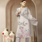 Mul Chanderi Light Grey Kurta Dupatta Pant Set