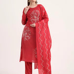 Red embroidered Kurta with Trousers with dupatta