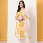 Mustard Cotton A-Line Kurta Dupatta Pant Set