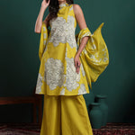 Mustard Cotton Aline Halter Neck Kurta Palazzo & Dupatta Set