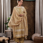Mustard Floral Print Pure Cotton(Schiffli) Straight Kurta And Trouser with dupatta Set