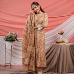 Mustard Floral Print Cotton Straight Kurta And Trouser with dupatta Set