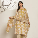 Mustard printed Kurta with Trousers with dupatta