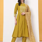 Mustard yellow embroidered Kurta with Trousers with dupatta
