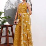 Mustard Silk Blend Halter Neck Kurta Palazzo Set