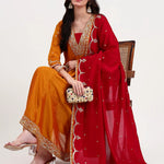Mustard Vichitra Kalidaar Kurta Set With Pant And Dupatta