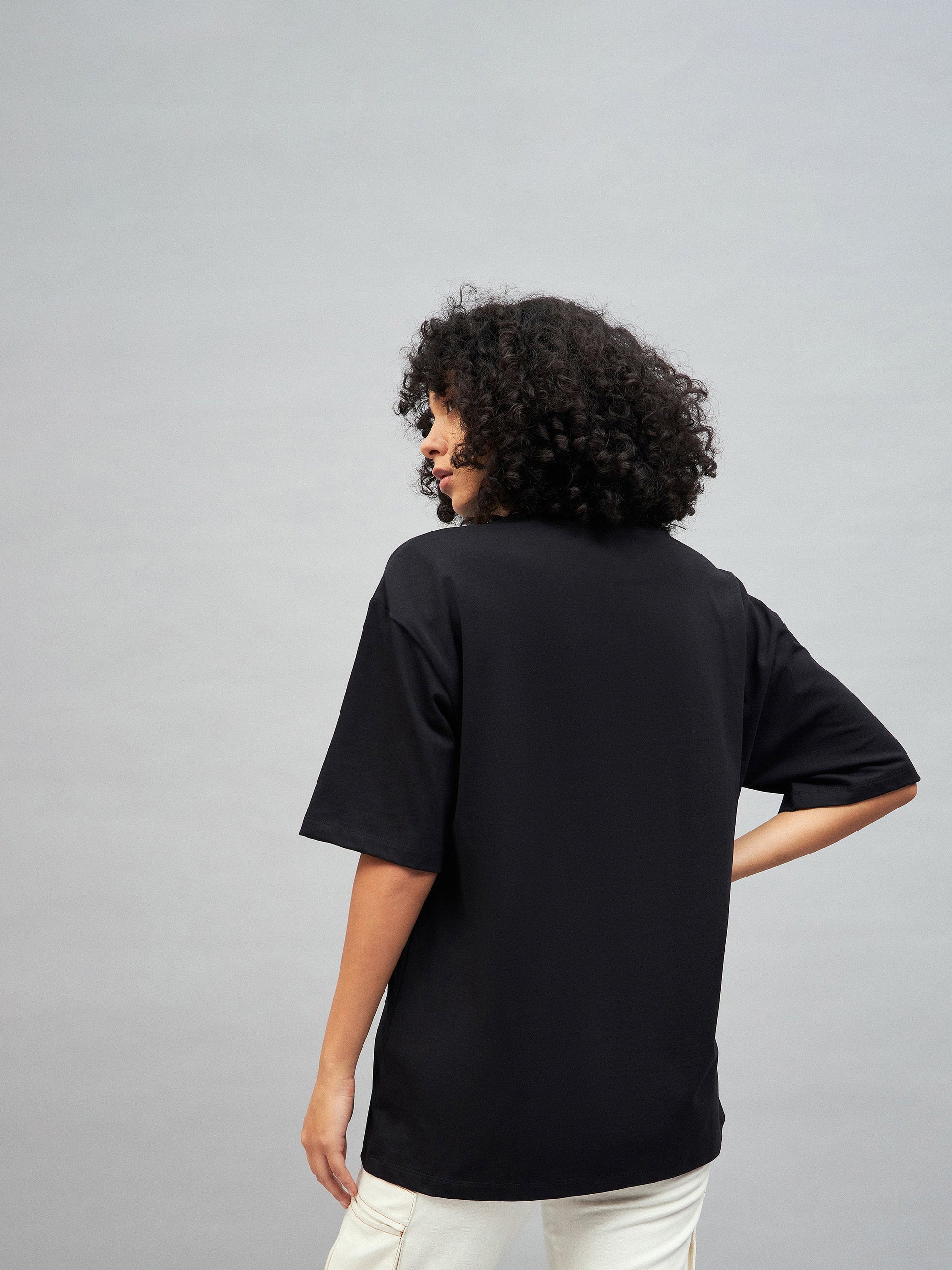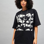 Black Retro Photographic Print Oversized T-shirt, in Cotton fabric, Unlined, Regular Length, Oversized, No Closure, Straight Hemline and features Print Detail At Front