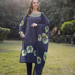 Navy Blue Cotton Straight Pakistani Kurta Trouser Dupatta Set
