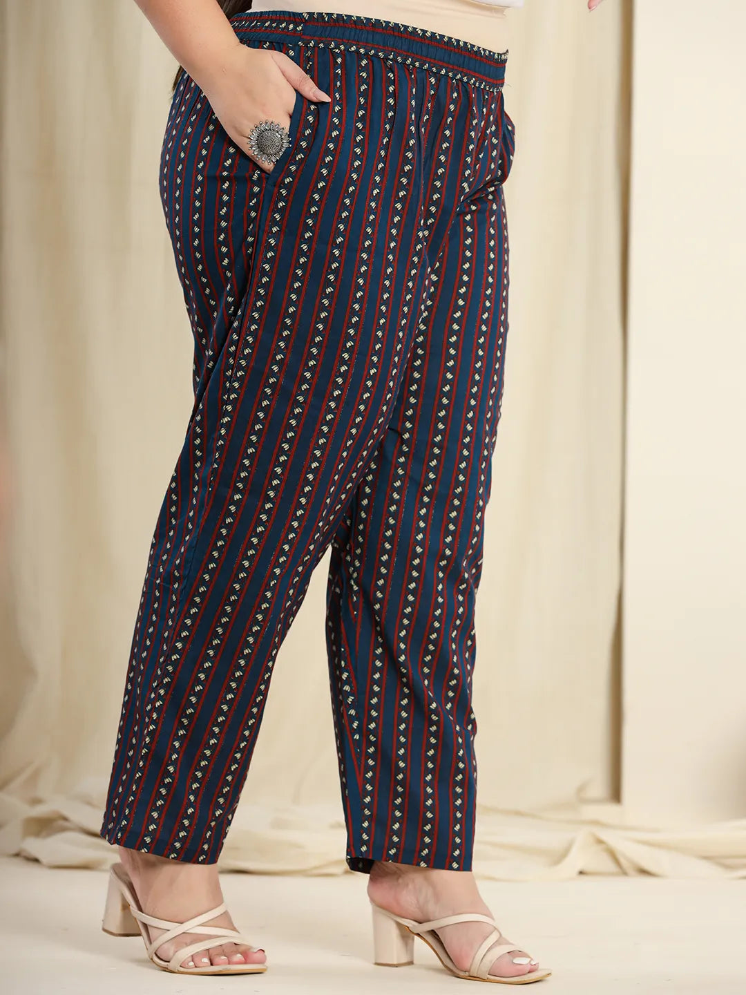 Printed one pocket Pure Cotton Trouser Slip-On Waist